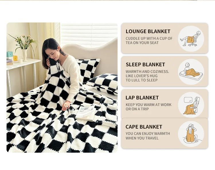 Craft of Weaving: Knit High-concerned chemical: None Grade: Qualified Pattern Type: Plaid Shape: Rectangle Wash Style: Mechanical Wash Type: Coral Fleece Fabric Use: Picnic,Travel,Home,HOTEL,Airplane Technics: Knitted Style: Pastoral Style Feature: Anti-Pilling,Portable Material: 100% Polyester Origin: Mainland China CN: Jiangsu Age: adults Season: Spring/Autumn