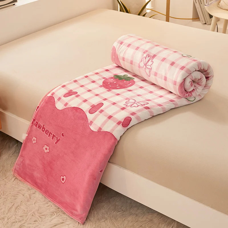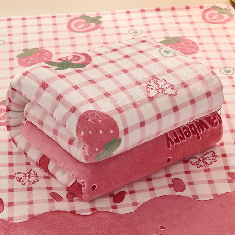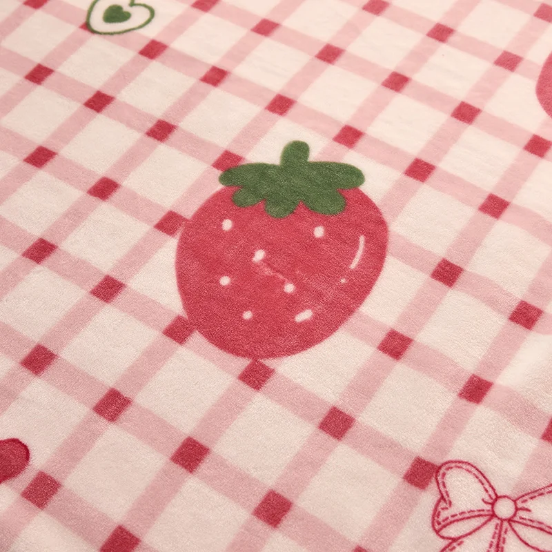 Girls Cartoon Strawberry Flannel Blanket, Warm Bedspread Sheet, Fuzzy Soft Fleece Plush Blankets for Bed Sofa Nap Shawl Blankets