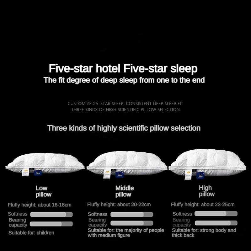 Goose Down Pillow White Cotton PillowCover Rectangle Bedroom Sleep 5-Star Hotel Pillow Low-Mid-high Pillows for Sleeping